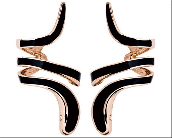 Coppia di Orecchini Serpenti Damiani, in Oro Rosa 18 Kt. in Smalto Nero