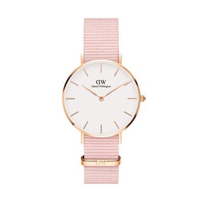 Orologio Solo tempo da donna della collezione Rosewater, con cassa in acciaio rose gold del diametro di 32 Mm. Quadrante bianco con indici in rose gold, cinturino in Nato rosa . Movimento al quarzo, resistente all’acqua fino a 3 ATM (Resistente alla pioggia).