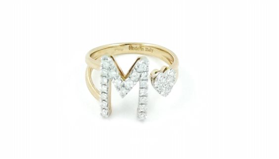 Anello Davite Delucchi in Oro Rosa 18 kt. con Diamanti a taglio brillante da 0.42 ct. all'interno della "M" del cuore centrali.
