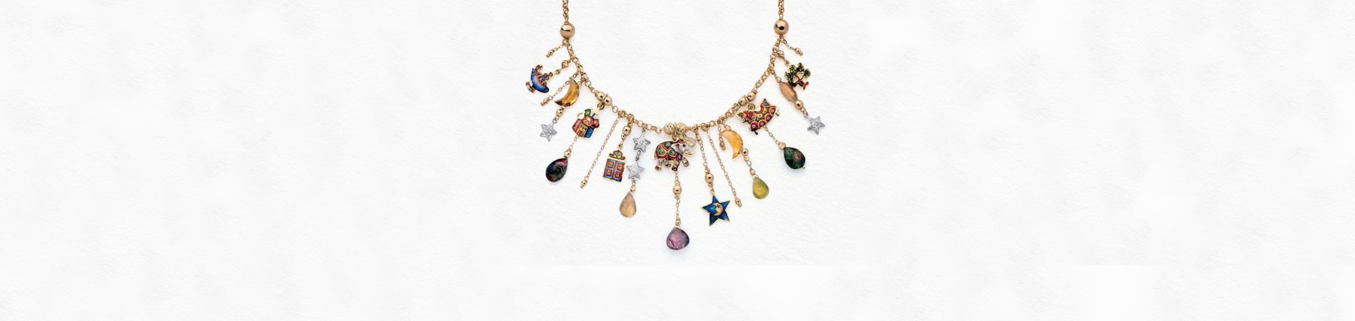 Guidata dalla sua passione per la pittura e dalla sua creatività, Gabriella Rivalta inizia nel 1969 a specializzarsi nella tecnica della miniatura su smalto a fuoco, dando alla luce i primi piccoli e preziosi ritratti in oro dipinti e smaltati. Con gli anni Gabriella Rivalta decide di applicare la sua arte alla gioielleria, ispirata dalla natura comincia a realizzare gioielli artigianali in oro miniato che, nelle collezioni più recenti, sono uniti alle pietre preziose. I gioielli donna di Gabriella Rivalta sono dei capolavori artigianali che raccontano storie magiche e suggestive.