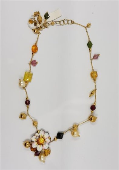 Collana con pietre preziose in oro giallo con ciondolo dipinto a mano