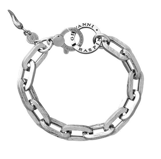 Il bracciale Sienna grande di Giovanni Raspini nasce da una tradizionale catena che si trasforma in gioiello contemporaneo. Luce dell'argento e bellezza dell'intreccio per un bracciale realizzato a mano in azienda.