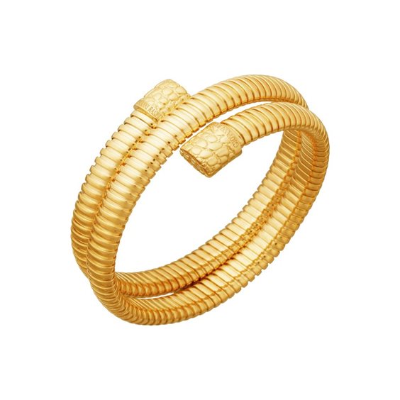 Nato dall’eleganza iconica della maglia tubogas, questo bracciale in argento dorato richiama la grande tradizione della gioielleria del Novecento. Giovanni Raspini lo personalizza mediante il segno iconico della texture di coccodrillo che caratterizza le due estremità, realizzate in argento fuso a cera persa.