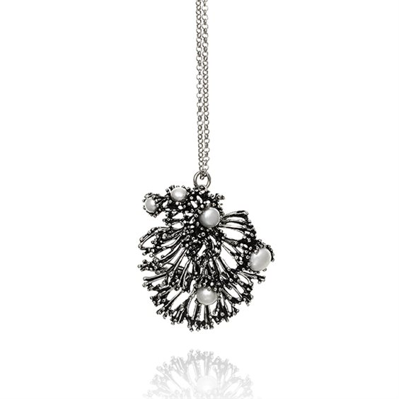 COLLANA ANEMONE - GIOVANNI RASPINI Collana in Argento 925 e perle naturali. Lunghezza 80 cm. Collezione Anemone - Sotto il mare c'è la vita che danza. Creature profonde, ma luminose d'argento e di perle cangianti. Gioie flessuose da indossare sul corpo. Lunghezza pendente 6 cm. Chiusura a moschettone