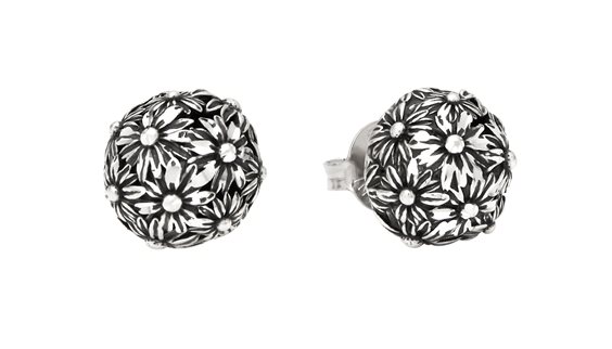 Orecchini Margherite Shine. Orecchini a bottone dal design sofisticato e chic, perfetti per un tocco di eleganza discreta. Due grandi bulle, ricoperte di bellissime piccole margherite in argento, danno vita al gioiello. Ogni singolo petalo dei fiori, realizzati a cera persa, è diamantato a mano in azienda per regalare ancora più luce al gioiello.