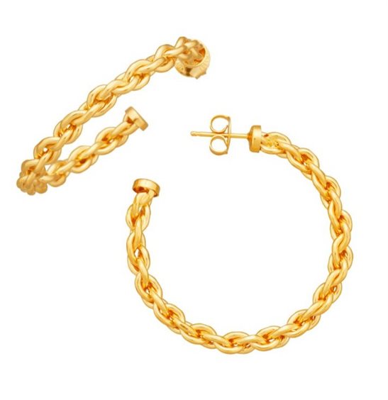 Giovanni Raspini propone questi grandi ed eleganti orecchini a cerchio in argento dorato fuso a cera persa. La forma di questi orecchini si ispira ad una catena classica, ma con effetto rigido. Fatti a mano in azienda. Per una donna che ama la bellezza della semplicità. Argento 925 in bagno d'oro 18 kt Peso singolo orecchino 10 gr Diametro 4,5 cm Chiusura con farfallina Fatto a mano in Italia