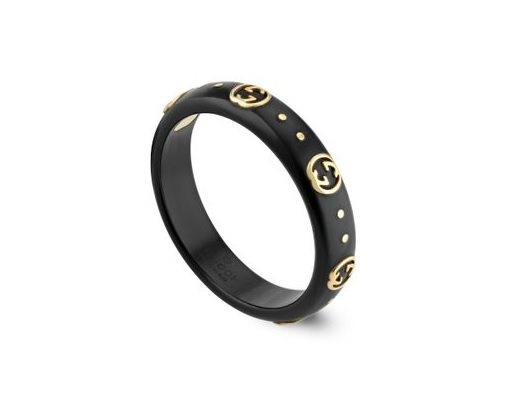 Anello Gucci Collezione Icon, in Oro Giallo 18Kt. Ceramicato di colore Nero.