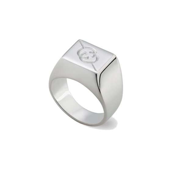 Anello Gucci chevalier con incrocio GG inciso diagonale in Argento 925