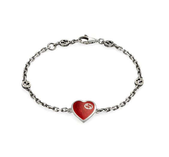Bracciale in Argento 925 Brunito cn centrale a Cuore in smalto rosso, misura 18.