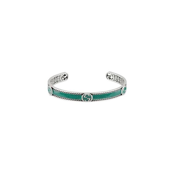 Bracciale Gucci collezione Interlocking G in Argento 925 e smalto Turchese con Logo a doppia G.