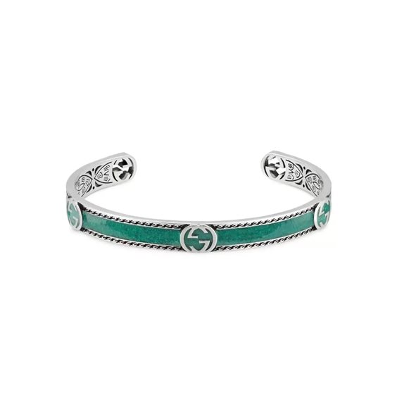 Bracciale Gucci collezione Interlocking G in Argento 925 e smalto Turchese con Logo a doppia G.