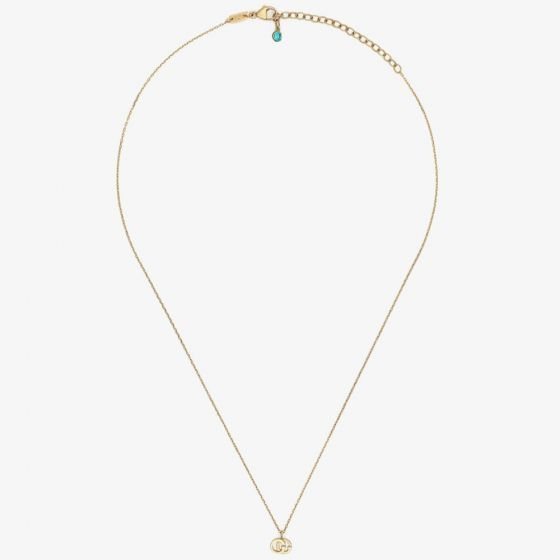 Realizzata in oro giallo 18 carati, questa delicata collana è ornata da un ciondolo doppia G ispirato al design d'archivio degli anni '70. La catena è rifinita con un dettaglio di topazio azzurro che arricchisce la chiusura.