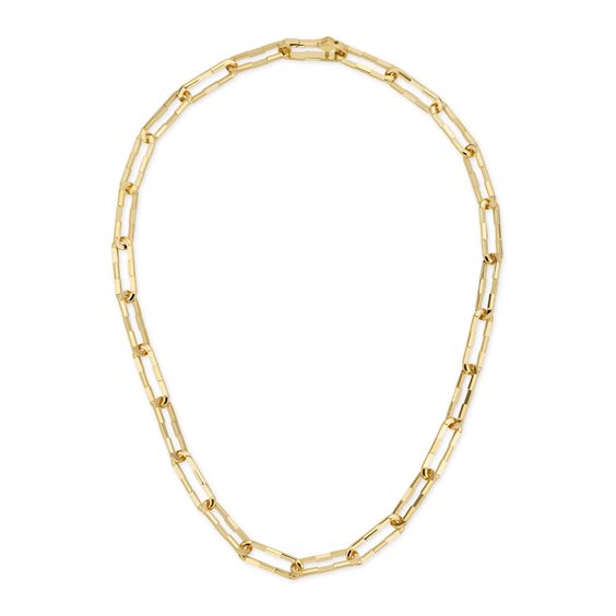 La collezione Gucci Link to Love offre molteplici possibilità di styling. Diamanti taglio baguette e trilliant caratterizzano gli accessori preziosi in oro rosa o bianco. Questa collana è realizzata in oro giallo 18 carati. Oro giallo 18 carati Catena a maglie geometriche larghe Chiusura a scatto Lunghezza: 42 cm Larghezza catena: 2,3 mm