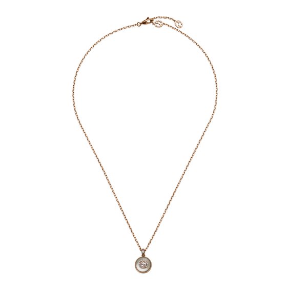 Collana in oro rosa, madreperla, diamante, pavé GG