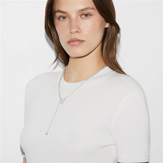 Questa collana a catena presenta un pendente a goccia e il caratteristico cuore. La linea Gucci Trademark unisce motivi e ciondoli esagonali al nome della Maison. Dal cuore ritagliato al ciondolo lucchetto, simboli giocosi continuano a contraddistinguere una selezione di anelli, collane, bracciali e orecchini per la Pre-Fall 2024. Catena in argento sterling 925 Ciondolo a forma di cuore ritagliato Dettaglio pendente a goccia Lunghezza: 60 cm