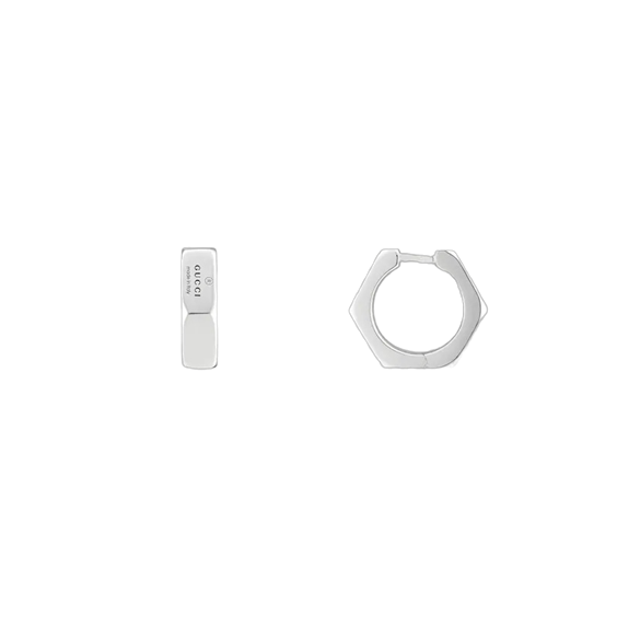 Coppia di Orecchini Gucci in rilievo definisce questi orecchini realizzati in argento sterling 925, un gioiello che riflette la narrativa della Maison. Il dettaglio sfaccettato valorizza ulteriormente l'accessorio. - Incisione Gucci trademark - Lunghezza: 16 mm