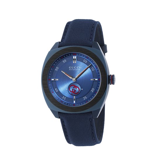 Cassa in acciaio inossidabile da 41 mm con rivestimento PVD blu, lunetta PVD nera, quadrante blu, cinturino in gomma con effetto tessuto, movimento a carica automatica