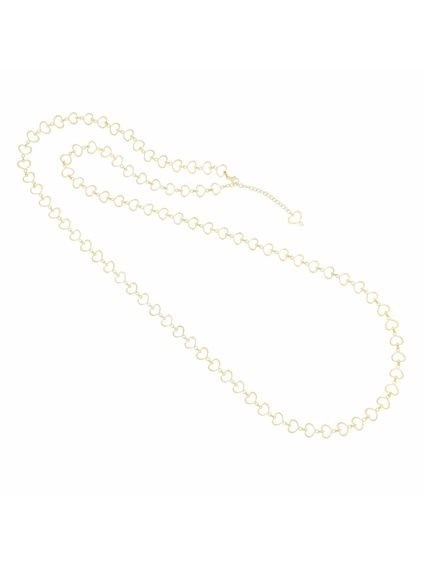 Collana lunga in argento 925 con galvanica oro giallo ad alto spessore e ad alta resistenza. La collana presenta una catena composta da cuori maman. Può essere regolato da un minimo di 92 cm ad un massimo di 98 cm. Cuore Maman traforato all'estremità. Chiusura a moschettone.