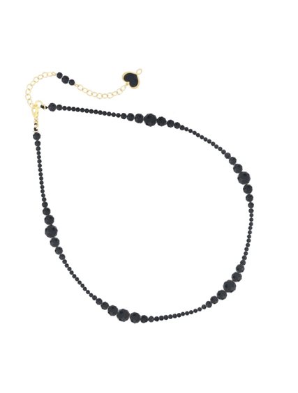 Girocollo in argento 925 con galvanica oro giallo ad alto spessore e ad alta resistenza. Il girocollo è ricoperto per tutta la sua superficie da pietre di spinello in diverse dimensioni. Può essere regolato da un minimo di 34 ad un massimo di 42 cm. Cuore Maman smaltato in nero all'estremità. Chiusura a moschettone.