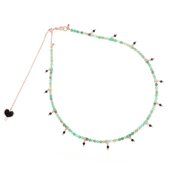 girocollo in argento rosa con pietre di smeraldo e gocce pendenti di spinello