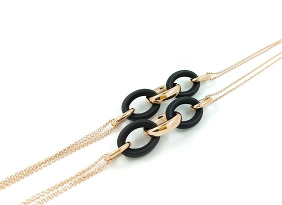 Collana Marcello Pane, in Argento 925, di colore Oro Rosa, con anelle in Rubber di colore Nero.