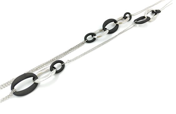 Collana Marcello Pane in Argento 925, con inserti in Rubber di colore Nero.
