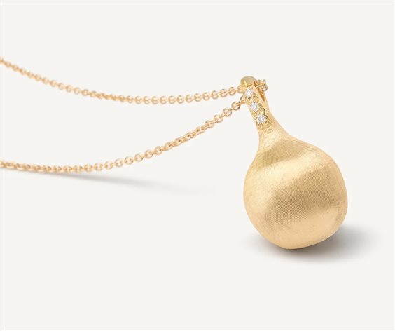 Delicato e perfetto per impreziosire ogni outfit, questo pendente monta una boule in oro giallo 18kt, finemente incisa a mano con l’antica tecnica del Bulino Millerighe. La catena regolabile e la contromaglia di Diamanti taglio brillante, lo rendono versatile ed elegante: un vero must have!