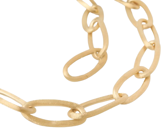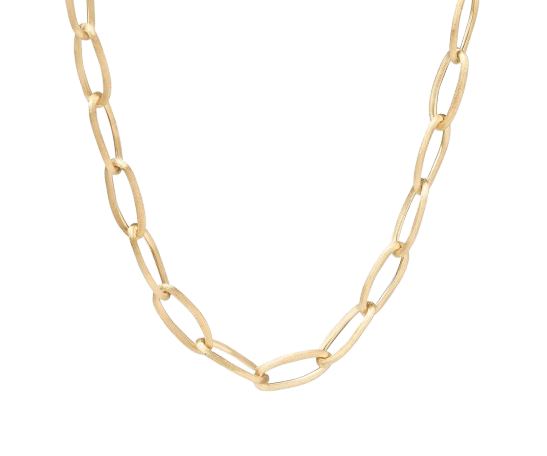 Collana in oro giallo 18Kt incisa a mano con l’antica tecnica del Bulino. Le splendide nuances delle pietre naturali illuminate da raffinati tocchi di luce disegnano gioielli che anticipano la brezza estiva. Delicate tonalità compongono un'armonia di sfumature che ricorda orizzonti lontani e spiagge dorate. Un esercizio di stile che unisce forme dal design contemporaneo ed elementi della tradizione orafa come l'incastonatura a griffe manuale che permette alla purezza della pietra di imporsi liberando un caleidoscopio di luci colorate. La scelta e composizione equilibrata delle pietre è eseguita personalmente da Marco Bicego che con grande passione le abbina seguendo un sofisticato studio cromatico che possa esaltare ogni singolo elemento.