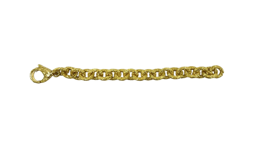 Un bracciale con maglia Groumette Ovali in Argento Dorato. Perfetto da indossare per completare un outfit raffinato e senza tempo, aggiungendo un tocco moderno. Chiusura a moschettone. Materiale: argento 925 Dorato