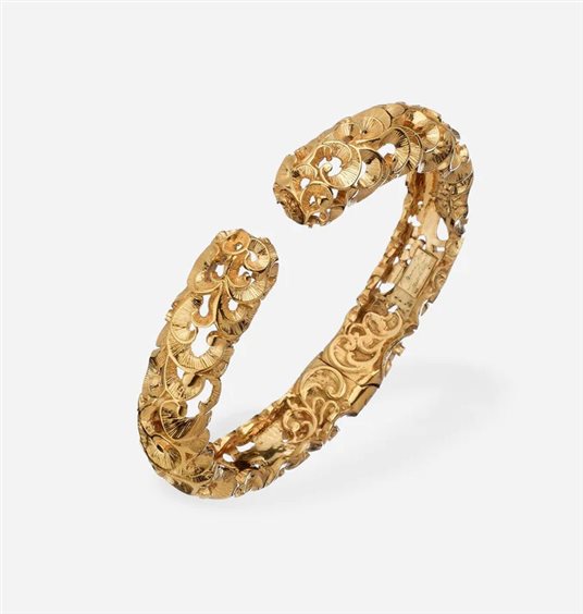 Il bracciale contrarié rigido è un must have sempre attuale. In questa versione placcata in oro 9 carati è un tocco di luce prezioso ed elegante . L'apertura centrale nascosta ne facilità la portabilità. Materiale: Argento e oro giallo 9 carati