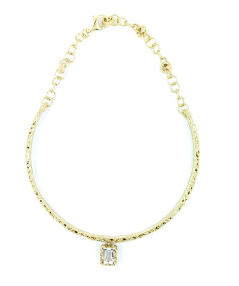 Collana Rigida Maria e Luisa Jewels, in Argento 925 Placcato in Oro Giallo, creata con l'antica tecnica del Bulino,con una pietra pendente rettangolare tagli smeraldo centrale in cristallo di rocca.