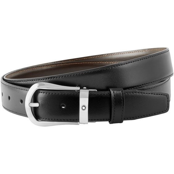 MONTBLANC Cintura Belt 118425 Double Face Pelle nera - marrone misure 3 x 120 cm accorciabile. Con meccanismo di sgancio rapido della fibbia per la messa a misura.