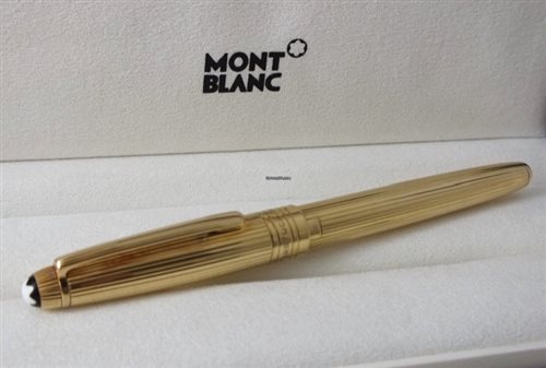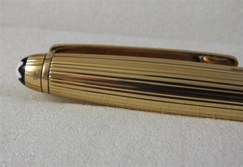 Stilografica con finiture dorate. Pennino in oro rosso Au585 / 14 K lavorato a mano con inserto finitura rodio