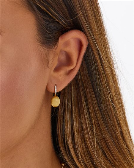 Raffinati orecchini in oro 18kt coronati da eleganti dettagli in diamanti. La sofisticata lavorazione in oro gioca con la luce, riflettendola suggestivamente, e suggellando l'incontro tra la Natura e l'artigianalità. Misura orecchino: 8,2 mm x 21,20 mm Ref. OS17-583 DIAMANTI: - Peso (totale): 0.09 CT - Purezza: VS - Colore: G - Taglio: brillante rotondo
