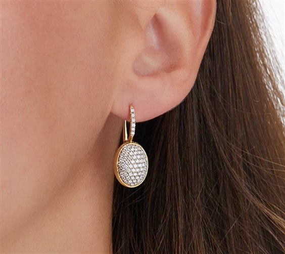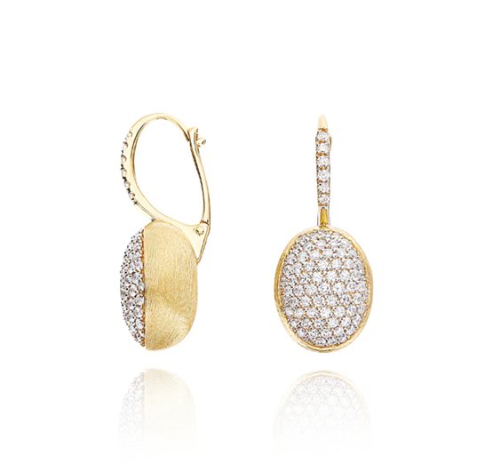 Due sontuose boules in diamanti abbracciate dall’oro 18kt inciso sono le protagoniste assolute di questi orecchini interamente realizzati a mano, capolavoro di artigianato artistico e di creatività. Misura orecchino: 11,50 mm x 27,50 mm Ref. OS27-583 DIAMANTI: - Peso (totale): 1.34 CT - Purezza: VS - Colore: G - Taglio: brillante rotondo