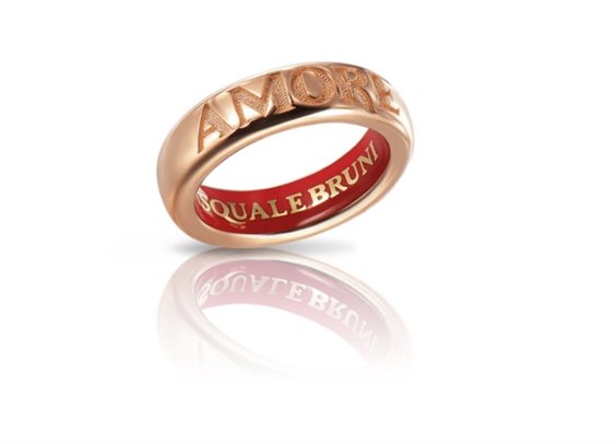 Anello Pasquale Bruni, in Oro Rosa e Smalto Rosso interno.