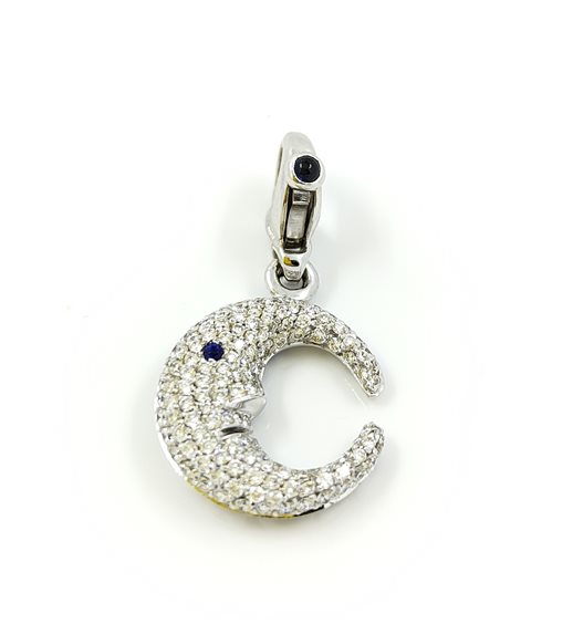 Charm Luna, Pasquale Bruni in Oro Bianco 18kt. con Diamanti a Taglio Brillante, e Zaffiri Blu.