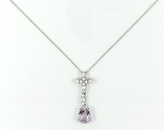Collana Pasquale Bruni in Oro Bianco, con pendente Croce e ciondolo in Ametista.
