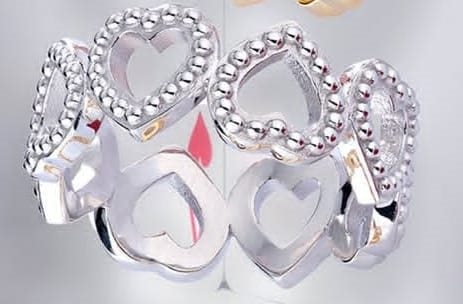 Anello Pesavento in argento 925 rodio con cuori giradito lavorati,Regina di Cuori.