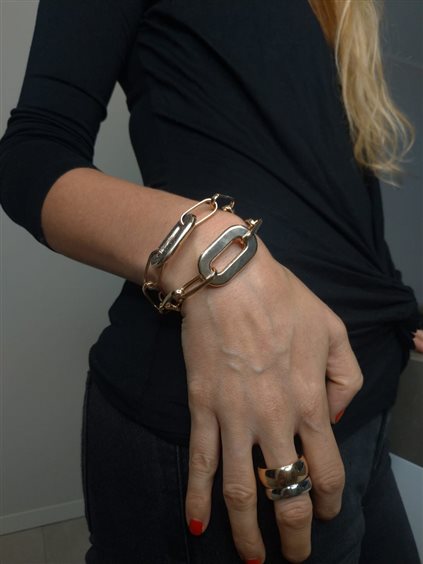 BRACCIALE IN ARGENTO DORATO DI PESAVENTO CON MAGLIE OVALI E REGOLABILE IN LUNGHEZZA.