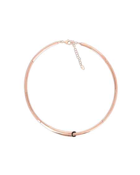 Collana girocollo rigido della collezione Pesavento Polvere Di Sogni da donna. Colore: oro rosa e nero. Il gioiello è realizzato in argento 925 rosé con al centro una linea impreziosita da micro-particelle ottenute, con la nanotecnologia, dalla lavorazione di materiali naturali minerali, a seconda delle caratteristiche e dei colori che si desiderano ottenere, e hanno una forma esagonale per esaltare l'effetto ottico della riflessione. Diametro della collana 13,5 cm con chiusura a moschettone. Un bellissimo sogno, luccicante e avvolgente, uno di quelli da cui non ci si vuole più risvegliare. Pesavento ha reso tutto questo reale creando dei gioielli unici ed eleganti, che aspettano solo di essere indossati e di mettere in risalto la tua femminilità. Con Pesavento i sogni diventano realtà!