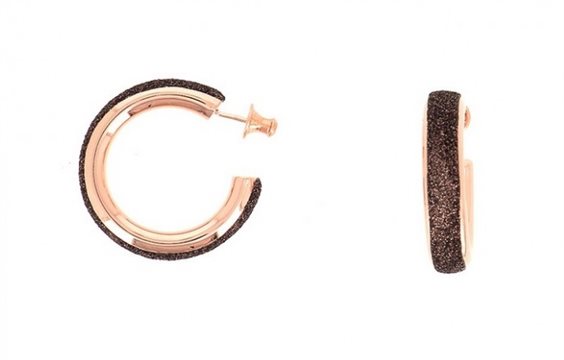 Orecchini a cerchio in argento 925 rosato ricoperti parzialmente dallo speciale materiale Polvere di Sogni. Si tratta di micro-particelle ottenute, con la nanotecnologia, dalla lavorazione di materiali naturali minerali, a seconda delle caratteristiche e dei colori che si desiderano ottenere, e hanno una forma esagonale per esaltare l'effetto ottico della riflessione. Idea regalo per san valentino.
