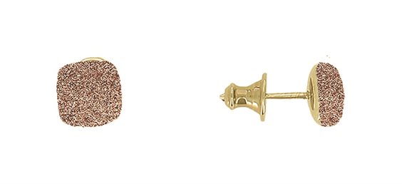 ORECCHINI A LOBO PESAVENTO POLVERE DI SOGNI COLOURS IN ARGENTO 925% PLACCATI ORO GIALLO, FORMA QUADRATA DIAMANTATA CON POLVERE ARGENTO DORATO.