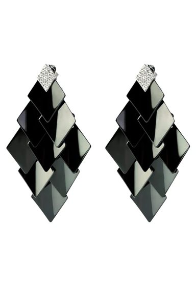 Coppia di Orecchini Roberto Demeglio, Collezione Diva grande in ceramica nera e diamanti.