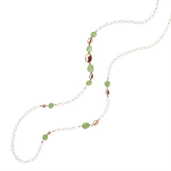 Collana realizzata in Italia, in legno d'ulivo laccato e smaltato a mano impreziosita da pepite in argento 925 placcato oro rosa 24 carati.