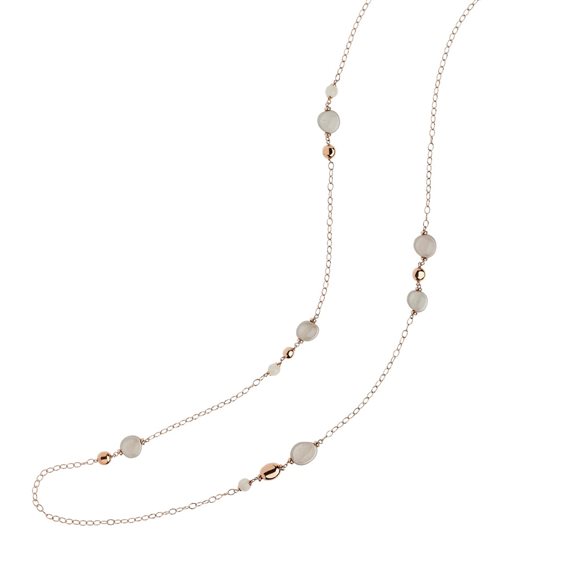 Collana realizzata in Italia, in legno d'ulivo laccato e smaltato a mano impreziosito da pepite in argento 925 placcato oro rosa 24 carati.