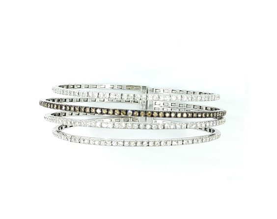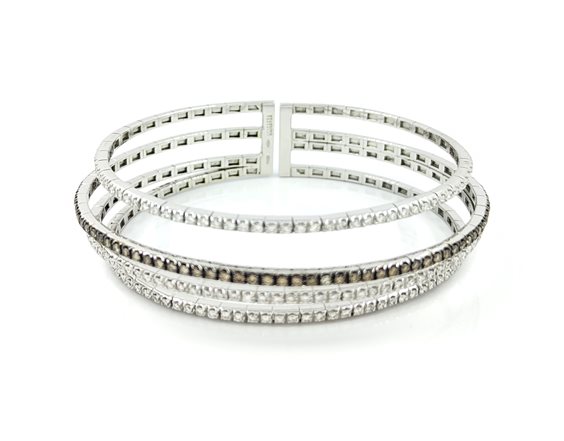 Bracciale a molla in Oro Bianco 18 kt. con Diamanti naturali a Taglio brillante bianchi e Brown per un totale di 2.48 ct.