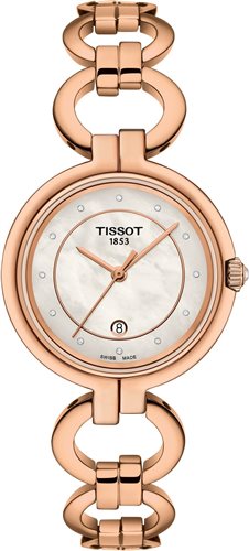Orologio solo tempo ispirato all eleganza del fenicottero , incarna la semplicita perfetta, attacchi armoniosi e sorprendente sottili con anse spostate. Cassa e bracciale in acciaio 316L lucido con trattamento in PVD oro rosa. Movimento al quarzo Swiss made ETA F03.111 : ore minuti secondi data. Vetro zaffiro antigraffio. Quadrante madreperla con 12 diamanti Top Wesselton (con certificato) lancette lucide. Bracciale regolabile con la nuova chiusura integrata al bracciale consente un'apertura laterale , agevolandole così la vestibilità. Impermeabile 5 bar (atm.). Peso 41 grammi. Garanzia Internazionale 2 anni. Scatola Originale. L'orologio gioiello ideale per essere un componente essenziale del guardaroba di ogni donna. Il Tissot Flamingo può essere descritto in due parole: elegante e audace, propio come il fenicottero.