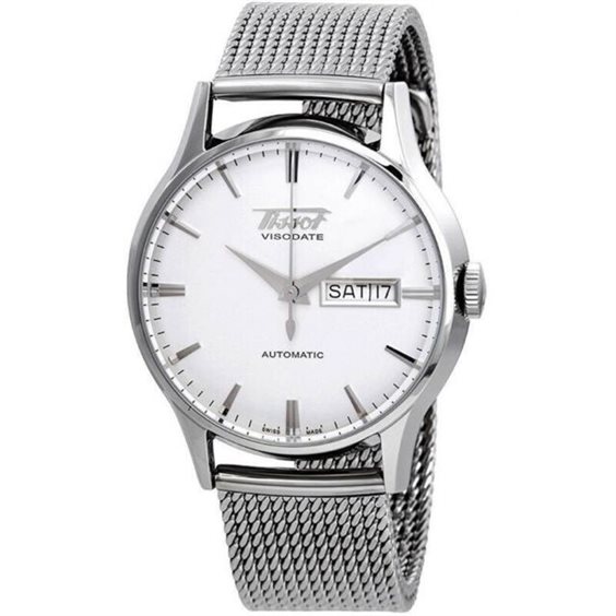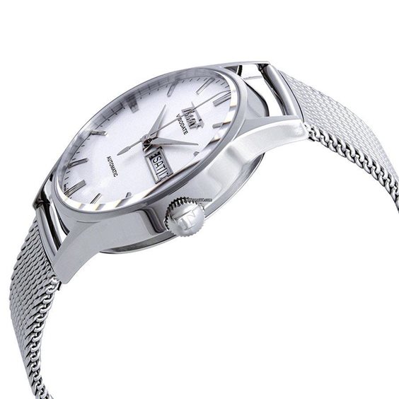 Orologio Solo Tempo. Cassa in acciaio lucido Ø 40 mm. spessore 11,6 mm.- ansa 20 mm. . Movimento meccanico automatico Swiss made Eta 2836-2 : ore minuti secondi centro,giorno e data, riserva di carica 40 ore. Vetro zaffiro bombato. Quadrante argentè opaco - index e sfere acciaio lucidi. - Bracciale in acciaio regolabile modello maglia milanese . Impermeabile 3 atm.. Peso 112 grammi - .Garanzia Internazionale 2 anni. Scatola Originale.