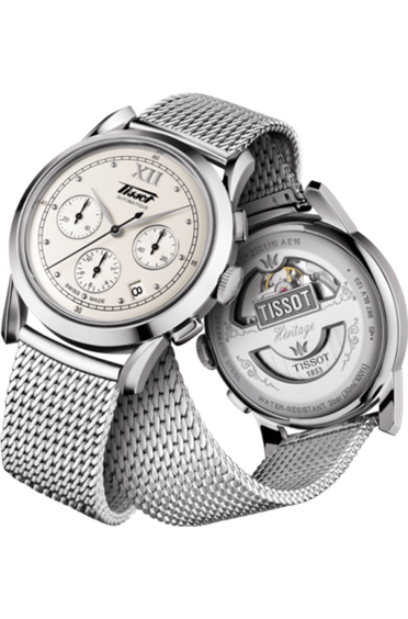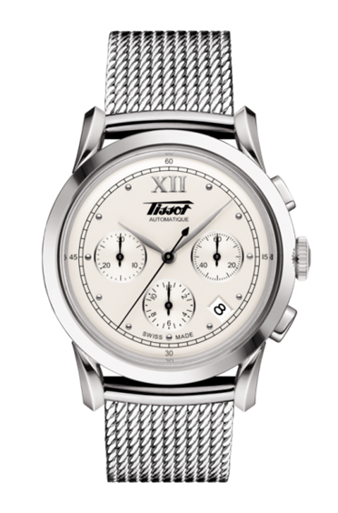 Orologio uomo cronografo serie TISSOT HERITAGE, movimento automatico, cassa e cinturino in acciaio, quadrante color argento con indici e datario, vetro in esatile, fondello a vista, impermeabile 3 bar (30 metri), riserva di carica 42 ore.